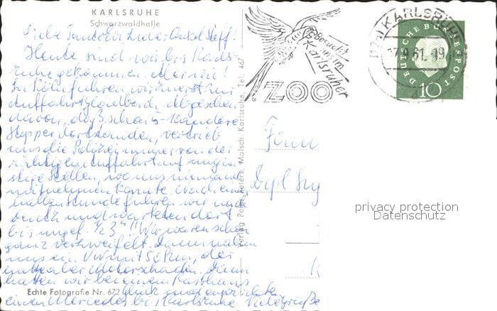 72026391 alte Postkarte Karlsruhe Schwarzwaldhalle postalisch gelaufen Erhaltung siehe scans KatCode: 11110008212000