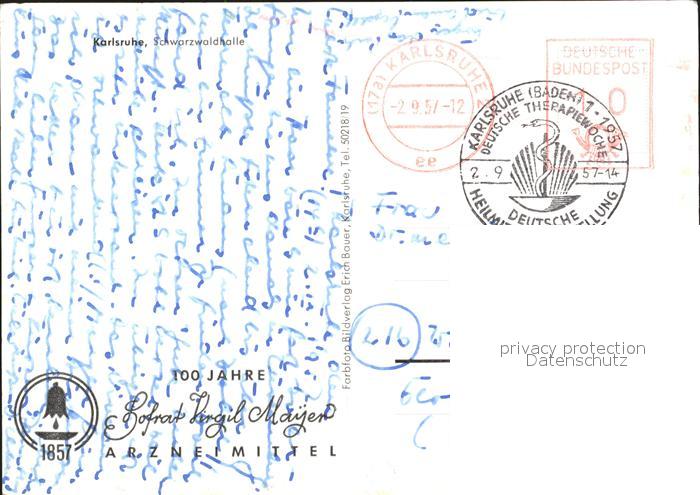 72023246 alte Postkarte Karlsruhe Schwarzwaldhalle postalisch gelaufen Erhaltung siehe scans KatCode: 11110008212000