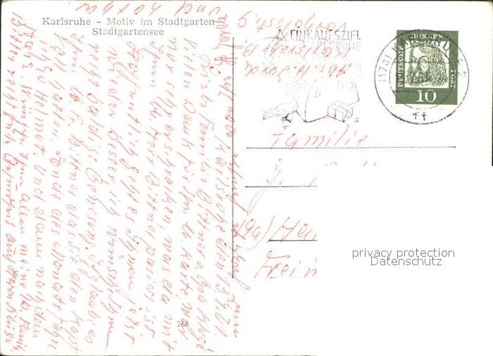 72019017 alte Postkarte Karlsruhe Stadtgarten See Fontaene Ruderboot postalisch gelaufen Erhaltung siehe scans KatCode: 11110008212000