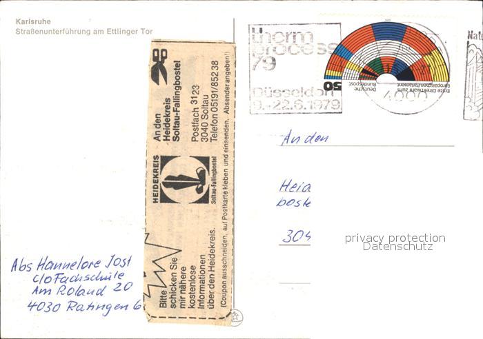 71941932 alte Postkarte Karlsruhe Strassenunterfuehrung am Ettlinger Tor Hochhaus postalisch gelaufen Erhaltung siehe scans KatCode: 11110008212000