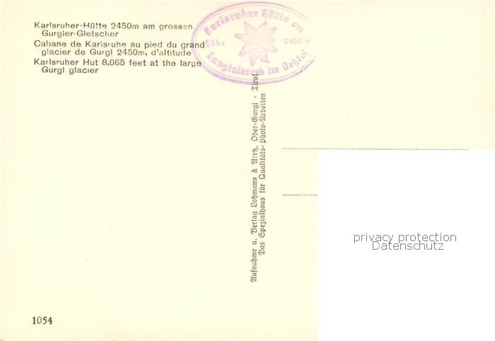 73853127 Karlsruherhuette 2450m oetztal Tirol AT Berghuette am grossen Gurgler-Gletscher oetztaler Alpen postalisch nicht gelaufen Erhaltung siehe scans [FriedD77] KatCode: 11390334070214