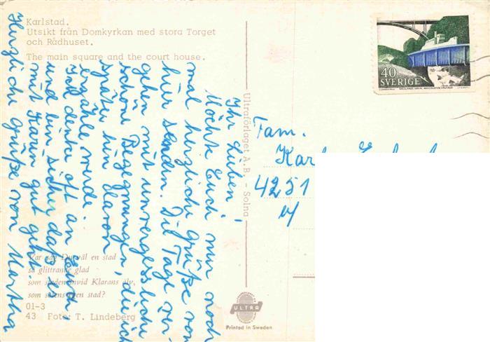 74014746 old postcard Karlstad Sweden The main square and the court house postalisch gelaufen Erhaltung siehe scans [WerneD78] KatCode: 11460