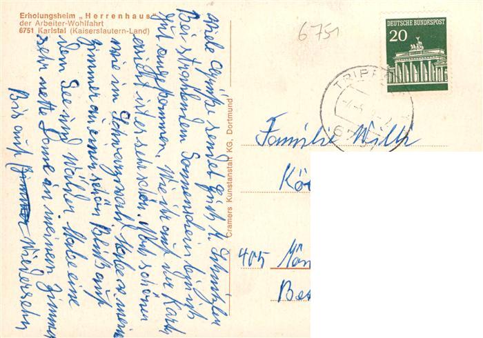 73881530 alte Postkarte Karlstal Karlsthal Trippstadt Kaiserslautern Herrenhaus Erholungsheim der AWO Park Teilansichten postalisch gelaufen Erhaltung siehe scans [FriedD77] KatCode: 11110007335047