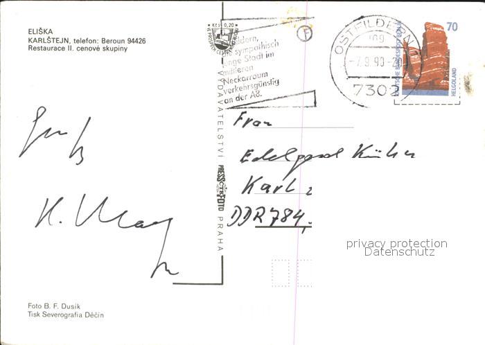 old postcard Karlstein Karlstejn Eliska postalisch gelaufen Erhaltung siehe scans [KathaD79]