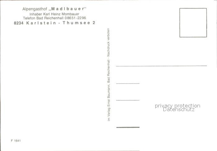 72285567 Karlstein Oberbayern Alpengasthof Madlbauer postalisch nicht gelaufen Erhaltung siehe scans KatCode: 11110009172114