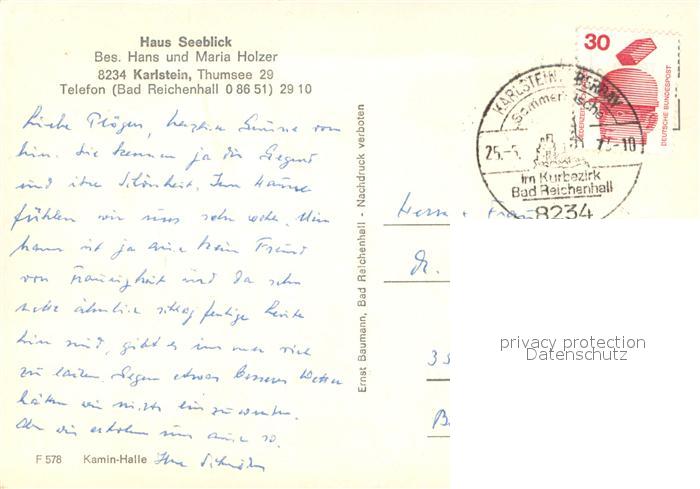 73615280 alte Postkarte Karlstein Oberbayern Haus Seeblick Kaminzimmer postalisch gelaufen Erhaltung siehe scans [WerneD78] KatCode: 11110009172114