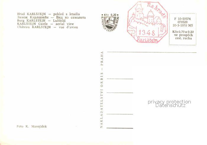 Karlstejn Hrad Burg Fliegeraufnahme postalisch nicht gelaufen Erhaltung siehe scans [FriedD77]