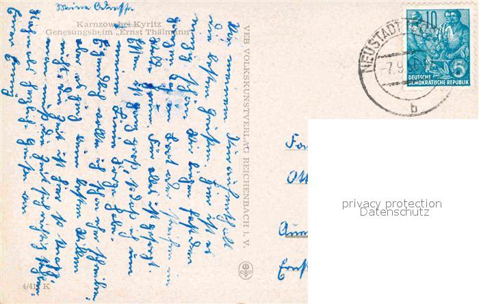72698540 alte Postkarte Karnzow Genesungsheim Ernst Thaelmann postalisch gelaufen Erhaltung siehe scans [LiesaD40] KatCode: 11110012068264