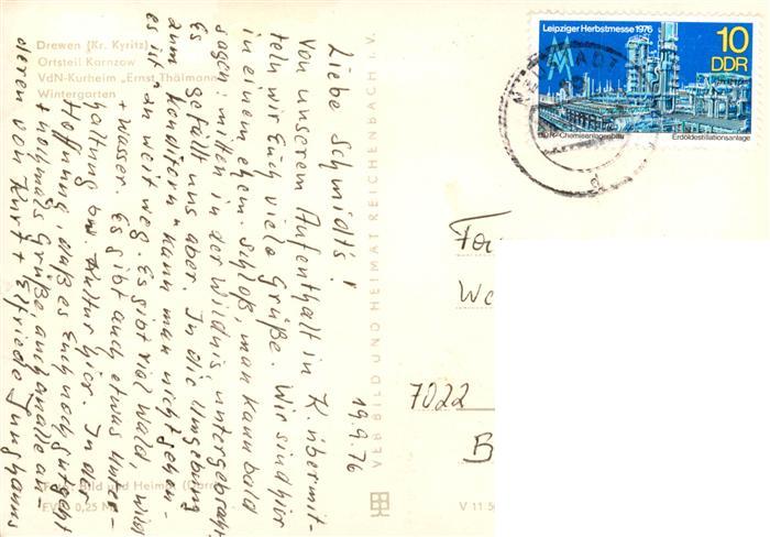 73879625 alte Postkarte Karnzow VdN Kurheim Ernst Thaelmann Wintergarten postalisch gelaufen Erhaltung siehe scans [FriedD77] KatCode: 11110012068264