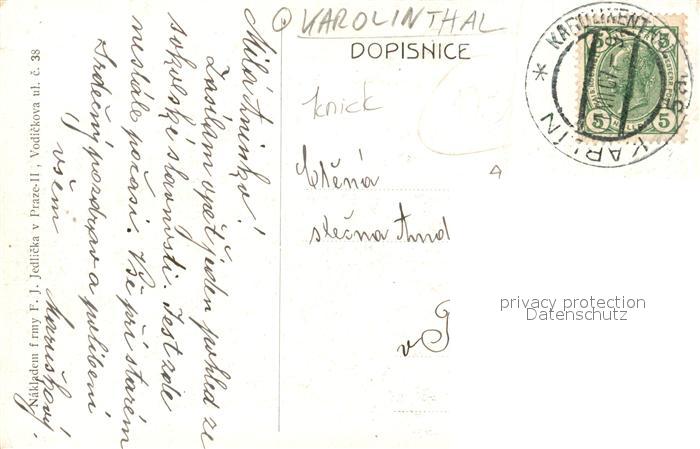 old postcard Karolinenthal Skupina Belgickych hostu postalisch gelaufen Erhaltung siehe scans [FriedD77]