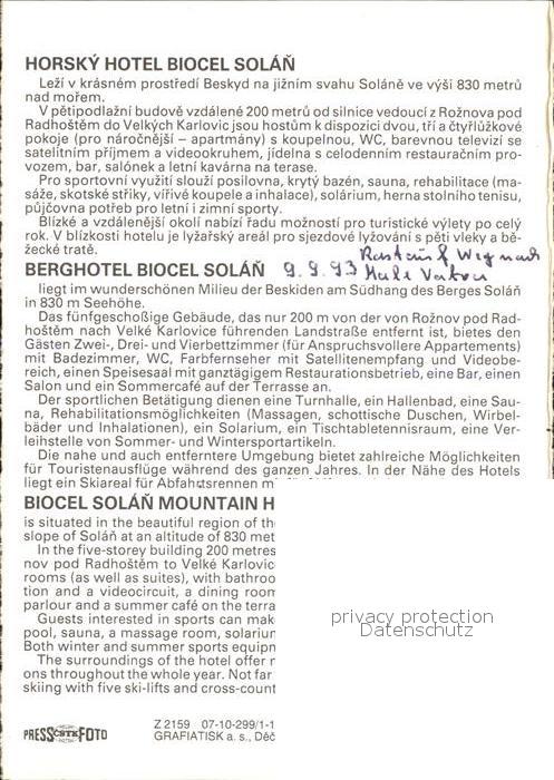 Karolinka Berghotel Biocel Solan postalisch nicht gelaufen Werbekarte (keine Postkarte) Erhaltung siehe scans