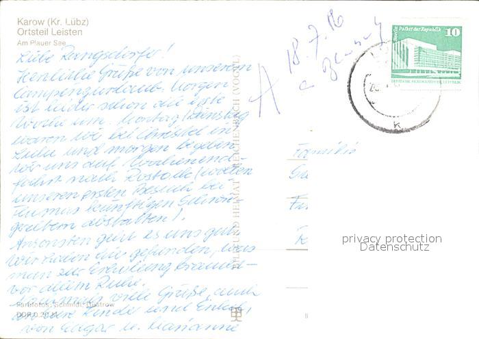 72129979 alte Postkarte Karow Luebz Leisten Plauer See postalisch gelaufen Erhaltung siehe scans KatCode: 11110013060037