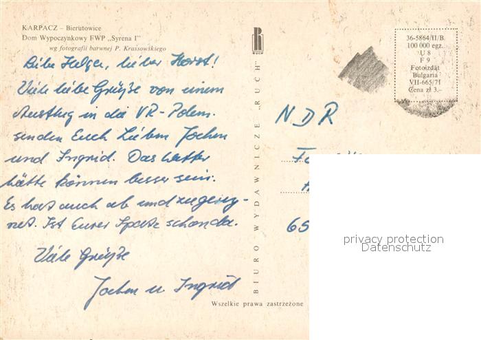 13220475 old postcard Karpacz Bierutowice postalisch gelaufen Erhaltung siehe scans [LiesaD40] KatCode: 11410