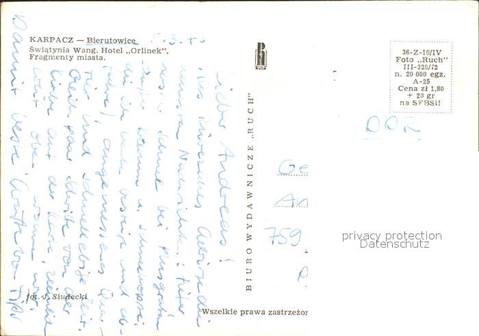 Karpacz Bierutowice Swiatynia Wang Hotel Orlinek Fragmenty miasta postalisch nicht gelaufen Erhaltung siehe scans