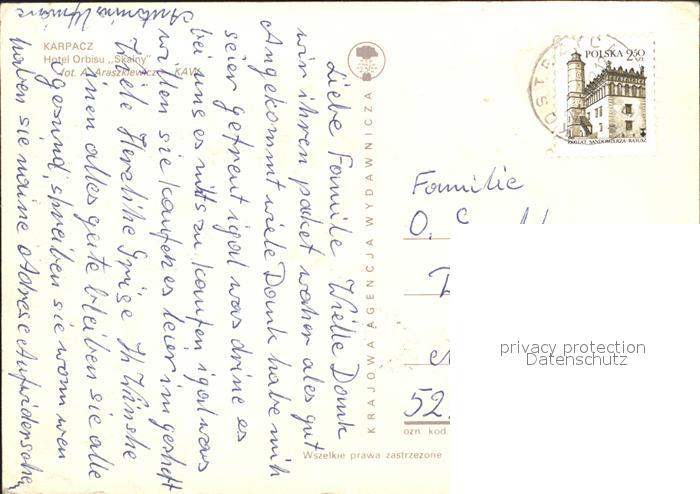 old postcard Karpacz Hotel Orbisu Skalny postalisch gelaufen Erhaltung siehe scans