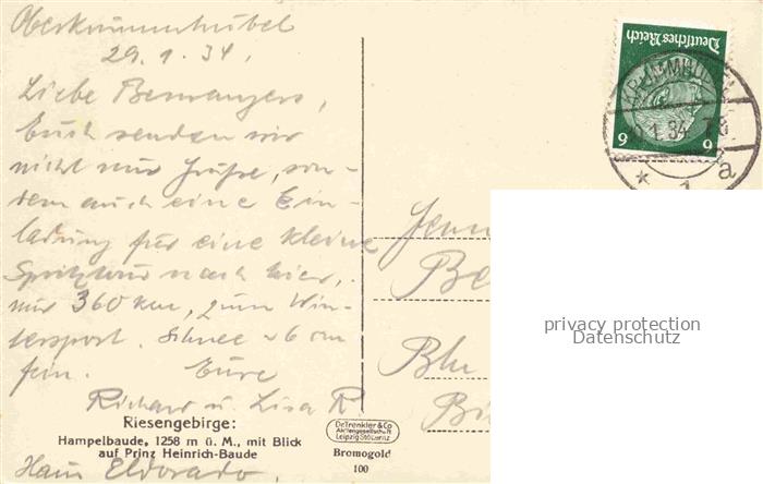 74033538 old postcard Karpacz Krummhuebel Riesengebirge PL Hampelbaude mit Blick auf Prinz-Heinrich-Baude Winterlandschaft postalisch gelaufen Erhaltung siehe scans [FriedD77] KatCode: 11410