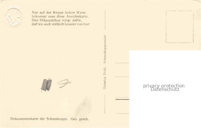74037101 Karpacz Krummhuebel Riesengebirge PL Letzter Aufstieg zu den Koppenhaeusern Dokumentenkarte der Schneekoppe postalisch nicht gelaufen Erhaltung siehe scans [FriedD77] KatCode: 11410
