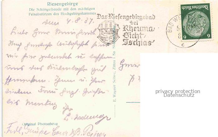 74030357 old postcard Karpacz Krummhuebel Riesengebirge PL Schlingelbaude Hochgebirgskamm postalisch gelaufen Erhaltung siehe scans [FriedD77] KatCode: 11410