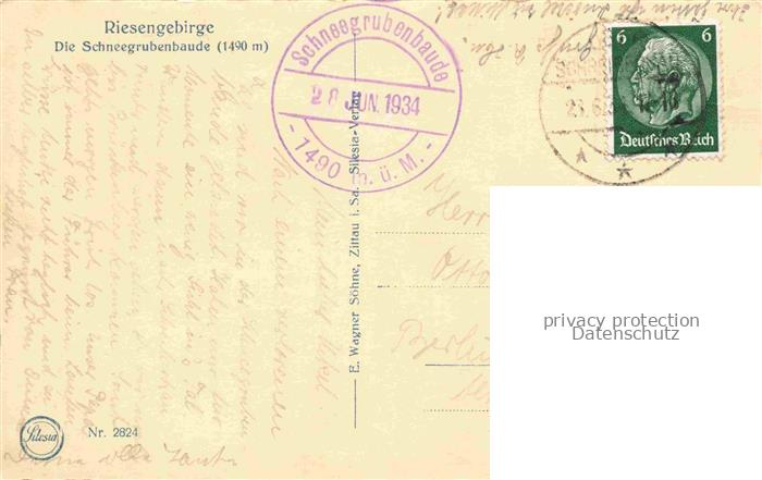 74030352 old postcard Karpacz Krummhuebel Riesengebirge PL Schneegrubenbaude postalisch gelaufen Erhaltung siehe scans [FriedD77] KatCode: 11410