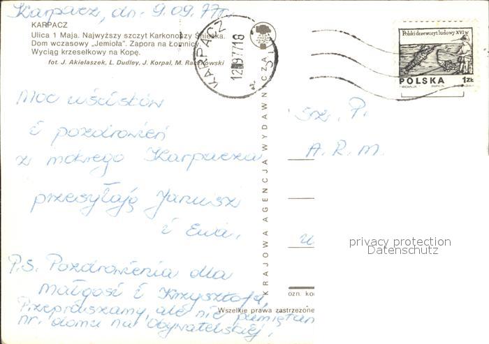 old postcard Karpacz Seilbahn Bruecke postalisch gelaufen Erhaltung siehe scans