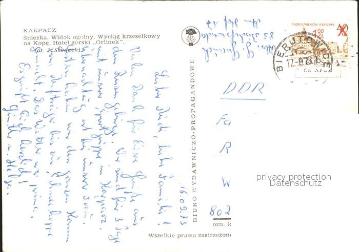 old postcard Karpacz Sniezka Widok ogolny Hotel gorski Orlinek postalisch gelaufen Erhaltung siehe scans