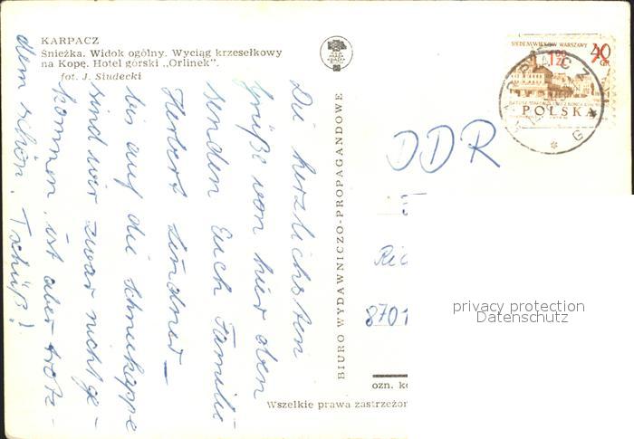 old postcard Karpacz Sniezka Wyciag krzeselkowy Kope Hotel gorski Orlinek postalisch gelaufen Erhaltung siehe scans