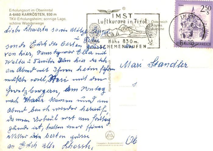 alte Postkarte Karroesten Tirol AT Panorama Erholungsort am Fusse des Tschirgant Luftaufnahme Kirche Hotel postalisch gelaufen Erhaltung siehe scans [FriedD77]