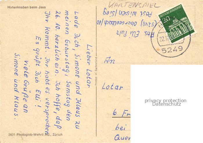 74086450 alte Postkarte Kartenspiel-Postkarte Jeu de Cartes CPA– Hirtenknaben beim Jass postalisch gelaufen Erhaltung siehe scans [IrynaD87] KatCode: 22520000000400