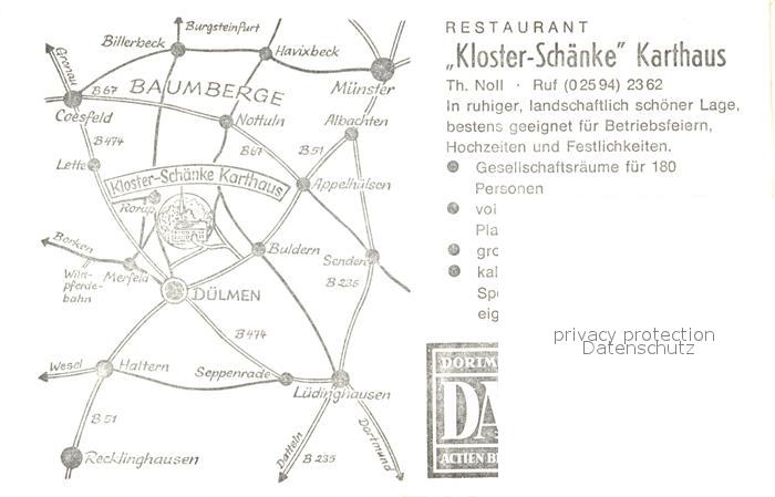 73361516 Karthaus Duelmen Kloster Schaenke postalisch nicht gelaufen Werbekarte (keine Postkarte) Erhaltung siehe scans [LiesaD40] KatCode: 11110005558016
