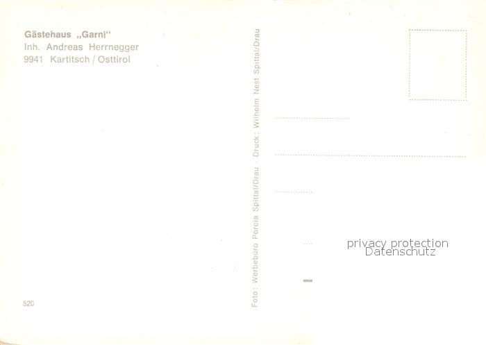 13317683 Kartitsch Gaestehaus Garni postalisch nicht gelaufen Erhaltung siehe scans [WerneD78] KatCode: 11390333070713