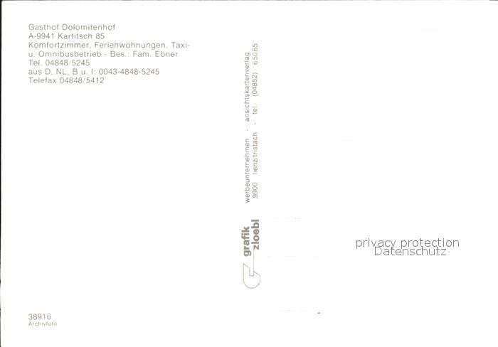 72450645 Kartitsch Gasthof Dolomitenhof postalisch nicht gelaufen Erhaltung siehe scans KatCode: 11390333070713