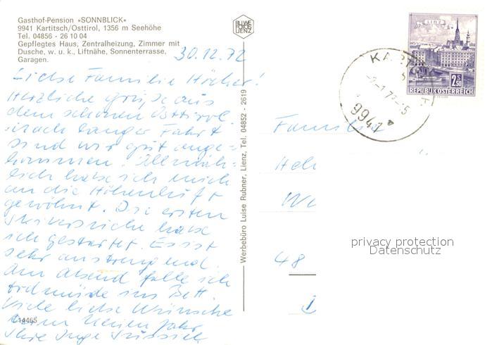 73642833 alte Postkarte Kartitsch Gasthof Pension Sonnblick Wintersportplatz Alpen postalisch gelaufen Erhaltung siehe scans [FriedD77] KatCode: 11390333070713