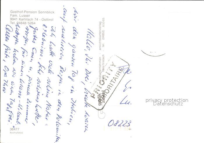 72376556 alte Postkarte Kartitsch Gasthof Pension Sonnblick postalisch gelaufen Erhaltung siehe scans KatCode: 11390333070713