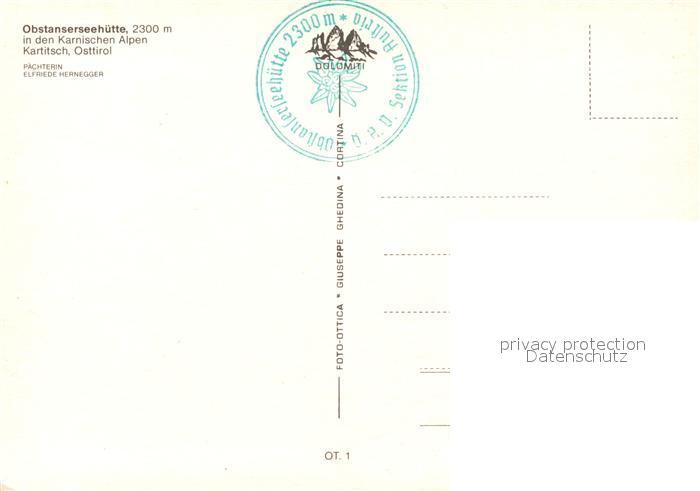 73311454 Kartitsch Obstanserseehuette Berghuette Karnische Alpen postalisch nicht gelaufen Erhaltung siehe scans [FriedD77] KatCode: 11390333070713