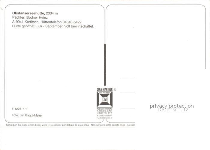 72502445 Kartitsch Obstanserseehuette Karnische Alpen postalisch nicht gelaufen Erhaltung siehe scans KatCode: 11390333070713