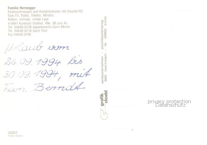 73776596 Kartitsch Osttirol AT Appartements Garni Monte Aussenansichten postalisch nicht gelaufen Erhaltung siehe scans [LiesaD40] KatCode: 11390333070713