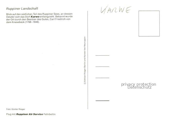 74043991 Karwe Neuruppin Brandenburg Ruppiner Landschaft mit Ruppiner See Fliegeraufnahme postalisch nicht gelaufen Erhaltung siehe scans [WerneD78] KatCode: 11110012068320