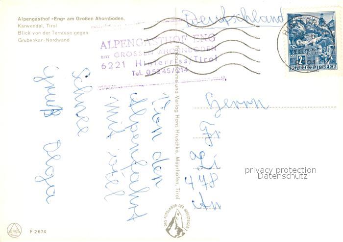 73166684 alte Postkarte Karwendel Alpengasthof Eng am Grossen Ahornboden postalisch gelaufen Erhaltung siehe scans [LiesaD40] KatCode: 11390335070926