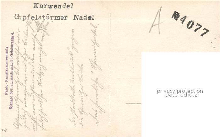 43045735 Karwendel Gipfelstuermer Nadel postalisch nicht gelaufen Erhaltung siehe scans [LiesaD40] KatCode: 11390335070926