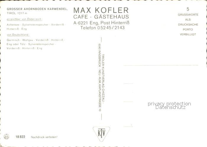 72400209 Karwendel Grosser Ahornboden postalisch nicht gelaufen Erhaltung siehe scans KatCode: 11390335070926