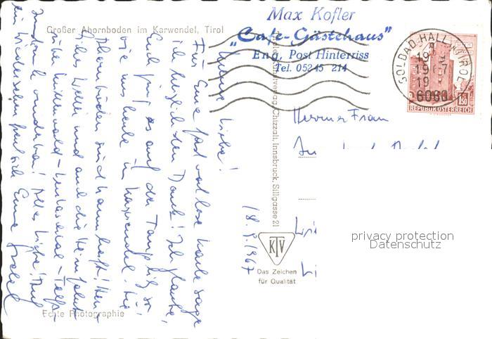 71922783 alte Postkarte Karwendel Grosser Ahornboden postalisch gelaufen Erhaltung siehe scans KatCode: 11390335070926