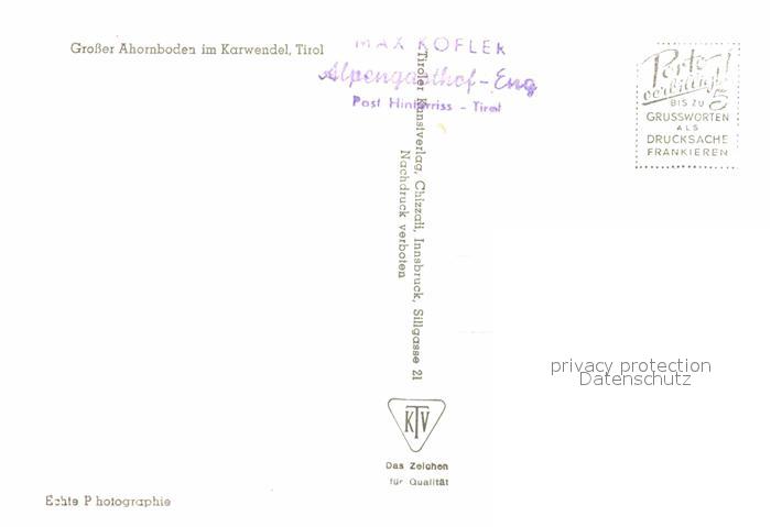 72811875 Karwendel Grosser Ahornboden postalisch nicht gelaufen Erhaltung siehe scans [WerneD78] KatCode: 11390335070926