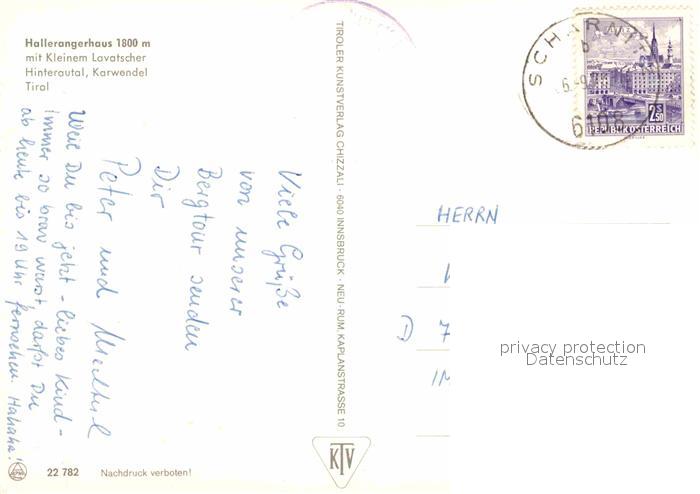 72796926 alte Postkarte Karwendel Hallangerhaus Kleiner Lavatscher postalisch gelaufen Erhaltung siehe scans [KathaD81] KatCode: 11390335070926