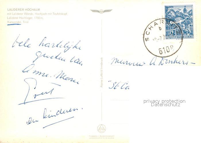 73027922 alte Postkarte Karwendel Laliderer Hochalm Hochjoch Teufelskopf postalisch gelaufen Erhaltung siehe scans [PaolaD17] KatCode: 11390335070926