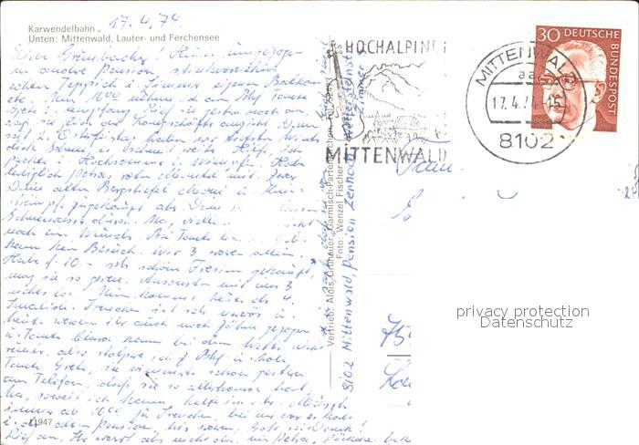 71929216 alte Postkarte Karwendelbahn Mittenwald Lauter- und Felchensee postalisch gelaufen Erhaltung siehe scans KatCode: 11390335070926
