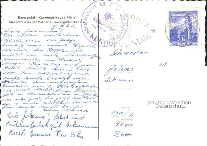 71984193 alte Postkarte Karwendelhaus Alpenverein Sektion Maenner Turnverein Muenchen postalisch gelaufen Erhaltung siehe scans KatCode: 11390335070926