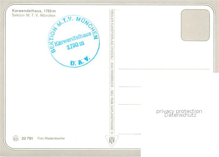 73339571 Karwendelhaus Berghuette Landschaft Talblick Alpenpanorama postalisch nicht gelaufen Erhaltung siehe scans [FriedD77] KatCode: 11390335070926