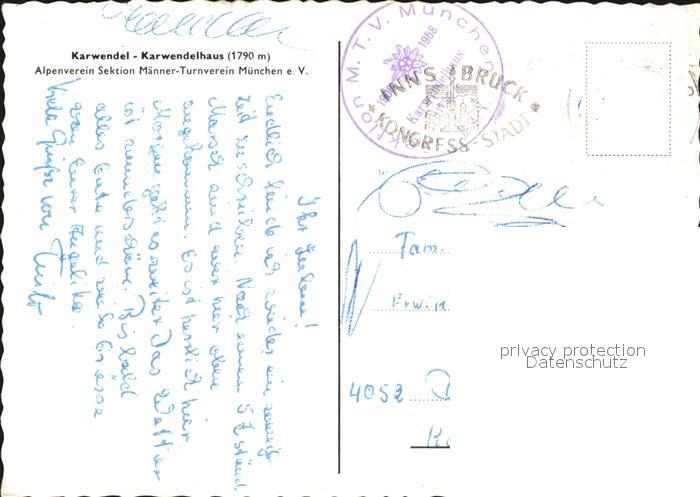 72462974 alte Postkarte Karwendelhaus Karwendel postalisch gelaufen Erhaltung siehe scans KatCode: 11390335070926