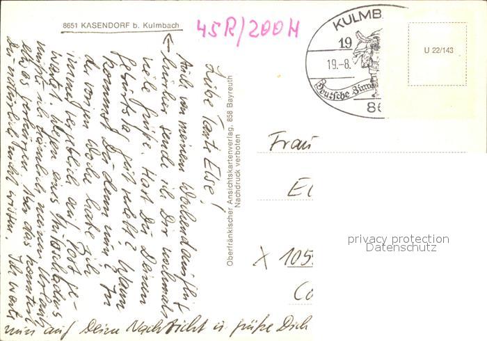 71972304 alte Postkarte Kasendorf Oberfranken Turm Gasthaus Ortsansichten postalisch gelaufen Erhaltung siehe scans KatCode: 11110009477124