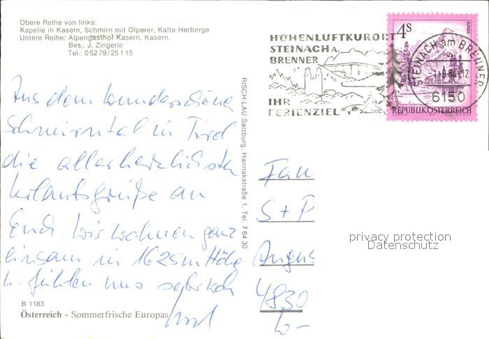 72482576 alte Postkarte Kasern Salzburg Kapelle Schmirn mit Olperer Kalte Herberge Alpengasthof Kasern postalisch gelaufen Erhaltung siehe scans KatCode: 11390323050303